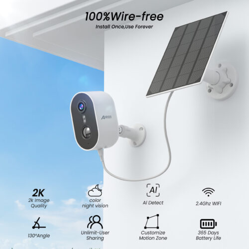 2K/3MP Solar Wireless Security Battery Camera Outdoor IP Cameras, ANRAN Rechargeable Battery Powered, Motion Detection, Waterproof, Video Surveillance Camera (Only Supports 2.4GHz Wi-Fi)